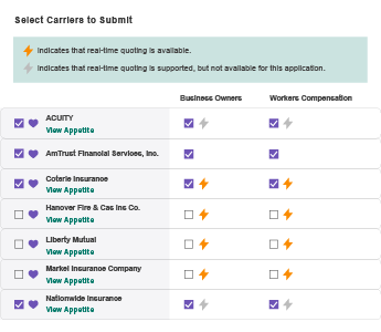 A native commercial lines comparative rater allows you to collect data, find in-appetite markets and submit to multiple carriers within EZLynx versus visiting individual carrier websites.