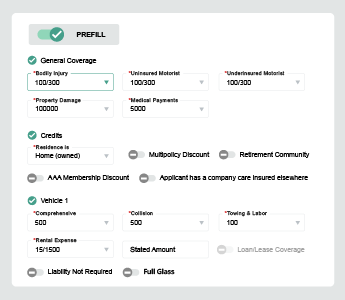 Our comparative rating workflow is packed with time-saving features like data pre-fill and lookup that empower your agency to quote more in less time. No duplicate entry, no wasted time – just streamlined cross-carrier quoting made easy.